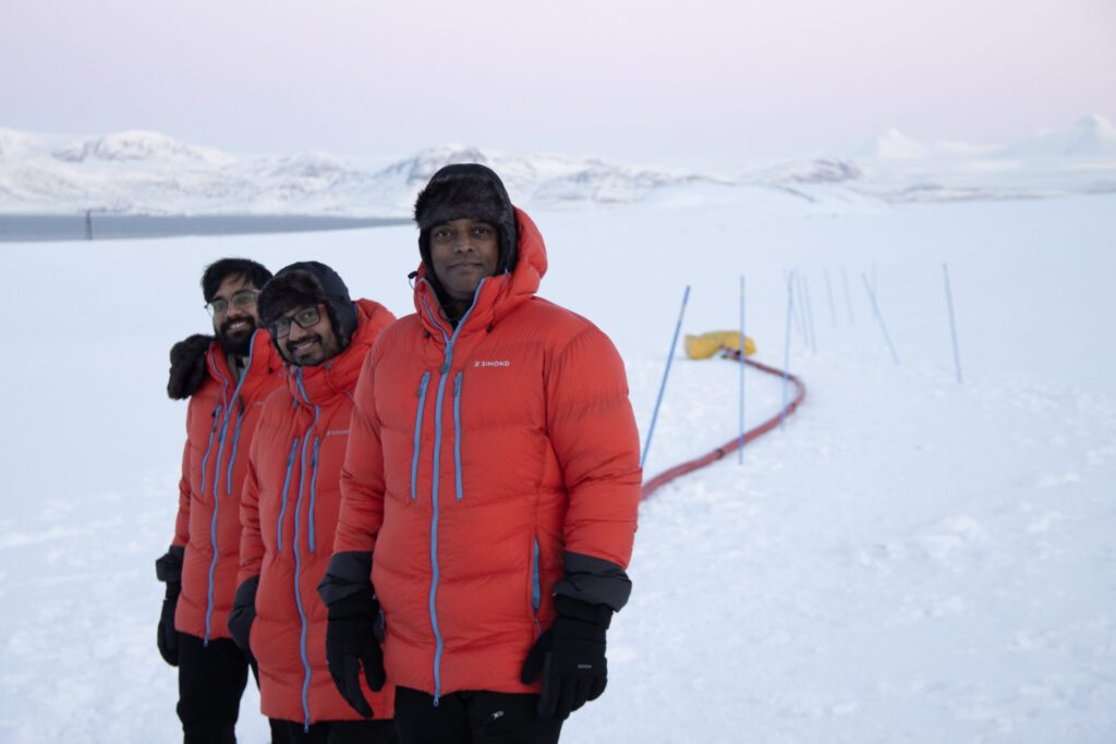 The telescope might not look like what you expect. It is a relatively small device that can be mounted and dismounted easily, making it possible to conduct measurements at several locations around the planet. In the picture, you see the telescope packed in a protective yellow bag, with all optical and power cables covered by a red tube. The tube had to be installed because the foxes did not respect the importance of ongoing science and chewed through the optical cable. Rude. Just when you think you’ve accounted for everything in your experimental setup, the Arctic finds a way to surprise you.